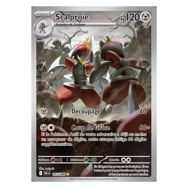 Découvrez Scalproie (blk143), une carte Pokémon de l’extension Foudre Noire, provenant du bloc Écarlate & Violet. Idéale pour compléter votre collection, cette carte Illustration Rare plaira autant aux collectionneurs qu’aux joueurs.