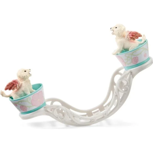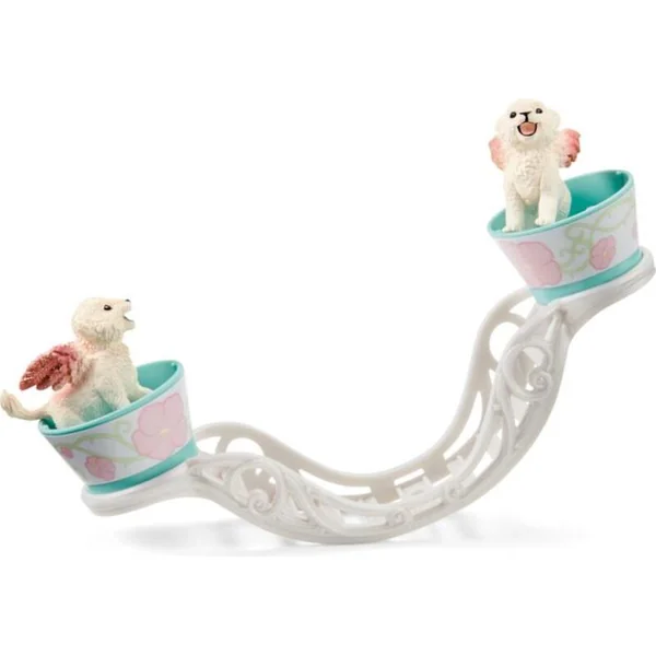 La formation pour les lionceaux ailés à Bayala® est un événement incroyable. Deux lionceaux veulent déjà voler majestueusement dans les airs, mais comme ils ont encore de petites ailes, ils s’entraînent à leurs compétences de vol au sol. Pour l’entraînement, ils utilisent un arc avec deux podiums et un cercle qu’ils peuvent sauter ou survoler. Une fois, avec leur patte, les lionceaux peuvent faire pivoter l’arc d’entraînement et le transformer en balançoire, sur laquelle ils peuvent se balancer joyeusement et faire des folies. Pendant qu’ils pratiquent leurs tours, beaucoup de choses amusantes se passent autour. Tout Bayala entend leurs heureux miaulements et se réjouit avec les adorables chatons ailés.