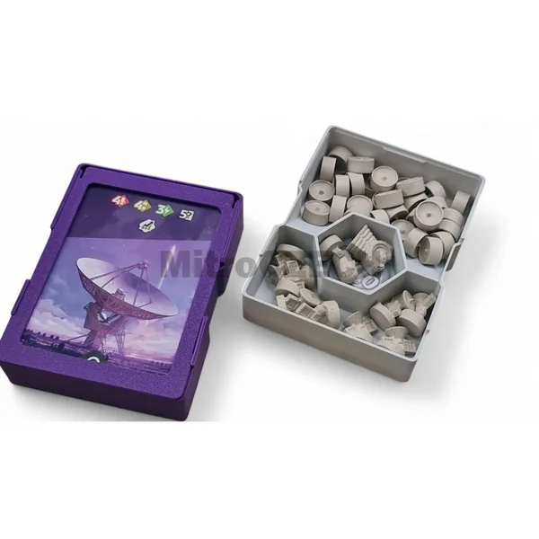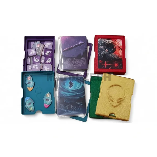 - Les cartes et composants sont déjà triés dans l’insert et sont donc prêts à jouer immédiatement après avoir été sortis.