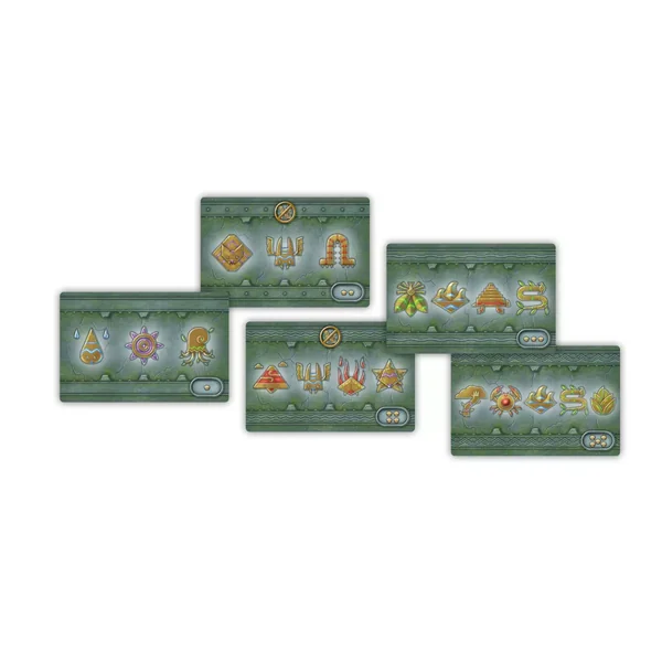 Pour prouver que vous êtes dignes de fouler du pied la cité engloutie, vous devez résoudre les 9 énigmes des Sfynx, représentées par les cartes Énigme. Pour résoudre une carte Énigme, il faut positionner les tuiles Civilisation de telle sorte que les tuiles reprenant les motifs représentés sur la carte Énigme soient toutes Restaurées et adjacentes l’une à l’autre dans l’ordre correspondant à la carte, soit horizontalement de gauche à droite, soit verticalement de haut en bas.