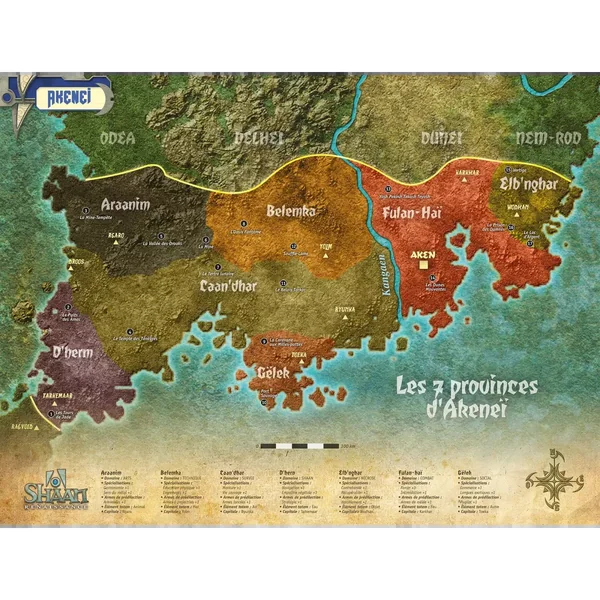 Shaan Renaissance : Atlas de l’Akeneï est un une aide de jeu pour le jeu de rôle Shaan, édité par Origames utilisant un système basé sur 3d10.