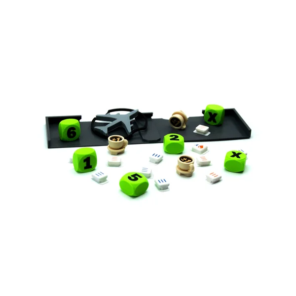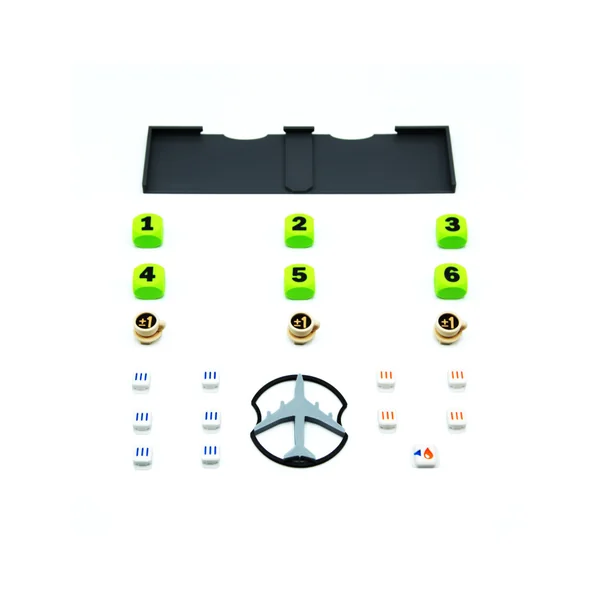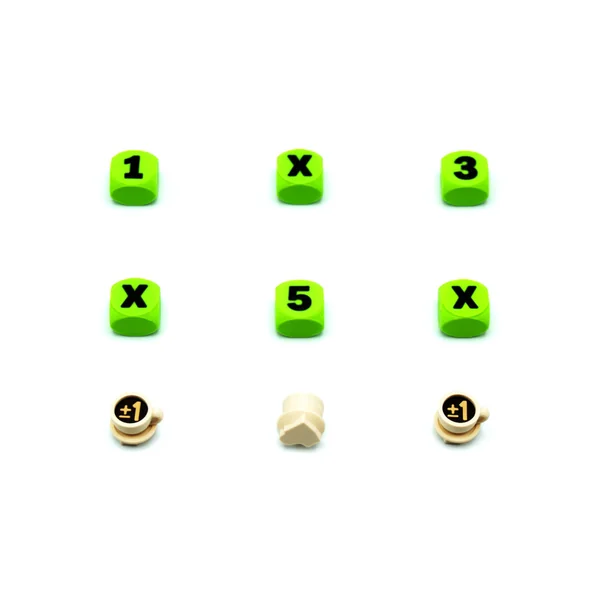 - 6 jetons internes (1 pour chaque valeur, de 1 à 6) (1,6 x 1,6 x 1,2 cm)