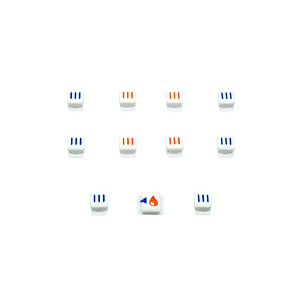 - 6 jetons interrupteurs bleus (1 x 1,4 x 0,5 cm)
