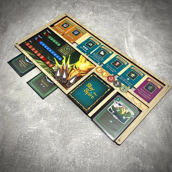 Améliorez votre expérience de jeu grâce à notre ensemble élégant et soigneusement conçu de plateaux et de couvercles pour le jeu de société Slay the Spire. Tous les plateaux maintiennent en place les plateaux, jetons et cartes des joueurs, garantissant ainsi l’ordre sur la table. Plongez-vous dans le plaisir de planifier vos coups grâce à des accessoires soigneusement conçus, fruits de nos années d’expérience dans le domaine des jeux de société.