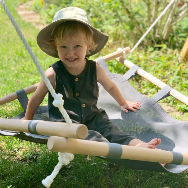 Elle offre de l’espace pour balancer ou se détendre avec plusieurs enfants en même temps. Matériaux respectueux de l’environnement.