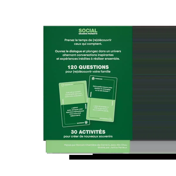 Social Grands-Parents contient également 30 activités à réaliser, pensées pour créer de nouveaux souvenirs et partager des moments uniques entre générations. Chaque partie devient ainsi un moment convivial, amusant et enrichissant pour toute la famille.