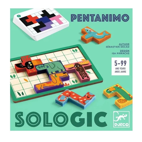 Pentanimo de la gamme Sologic de Djeco est un jeu de Pentamino avec des animaux !