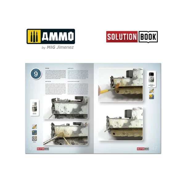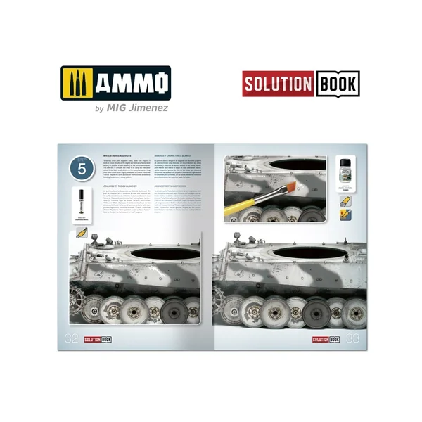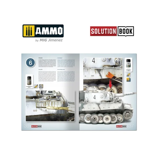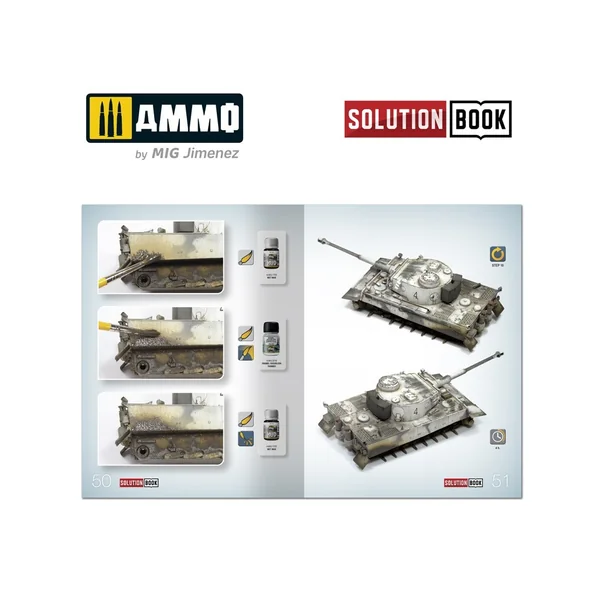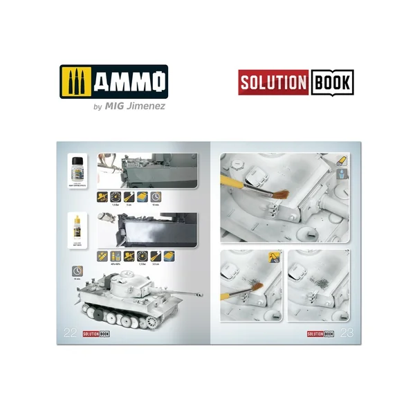 Le guide complet de 64 pages avec des tutoriels étape par étape en quatre langues (anglais, espagnol, français et allemand) explique comment appliquer les différentes couleurs et effets couramment observés sur les véhicules militaires allemands blanchis à la chaux durant les mois d’hiver de la Seconde Guerre mondiale. SOLUTION BOOK est un guide simple et basique destiné à aider tout modéliste à obtenir facilement des résultats similaires à ceux montrés dans chaque exemple. Peu importe que le lecteur soit novice ou expérimenté, en suivant les étapes de ce guide, vous serez en mesure d’obtenir des résultats étonnants grâce aux méthodes efficaces et efficientes présentées.