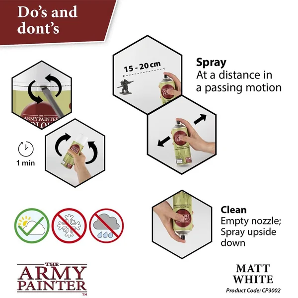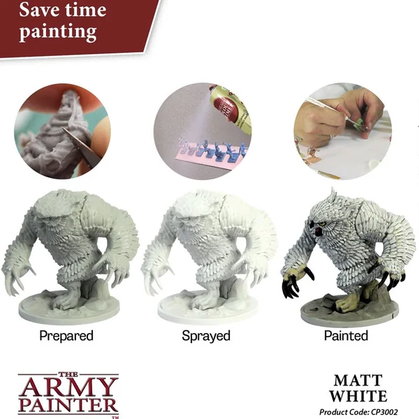 Un pigment très fin fait de Matt White Undercoat donne un apprêt parfait pour tous les travaux de peinture. La peinture sèche très rapidement et laisse chaque détail de la miniature en excellent état.