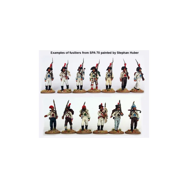 Cette boîte permet d’assembler de l’infanterie de ligne, de la milice provinciale, des grenadiers et de l’infanterie légère. Vous y trouverez un large choix de coiffes : bicornes, bonnets à poil de grenadier, bonnets de fatigue, shakos et couvre-chefs civils dans les deux ensembles. Les figurines peuvent être représentées en marche formelle ou décontractée. Ce set et le SPA80 ont été conçus pour être totalement compatibles : en combinant les deux boîtes, vous pouvez également créer des poses supplémentaires comme « au repos » ou en tirailleur.