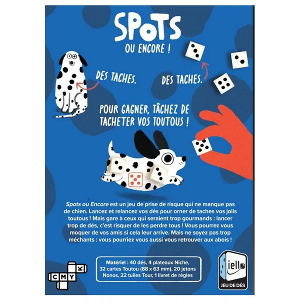Lancez et relancez vos dés pour orner de taches vos jolis toutous ! Mais gare à ceux qui seraient trop gourmands : lancer trop de dés, c’est risquer de les perdre tous !