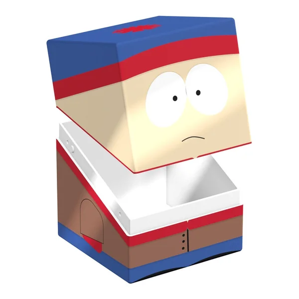 Boîte de collection idéale pour ranger des decks de JCC, des accessoires de jeux de société ou d’autres objets de collection. Squaroes South Park peut contenir jusqu’à 100 cartes en double sleeves lorsqu’il est utilisé comme boîte à deck.