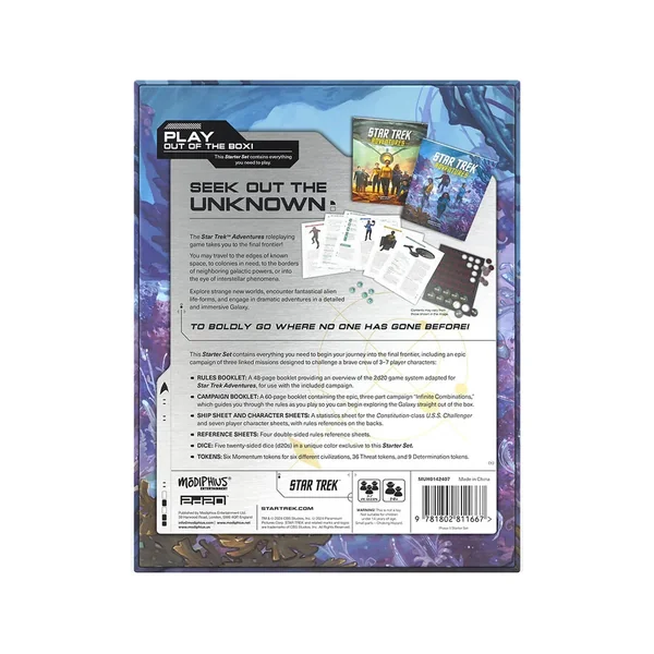 - Livret de règles : Un livret de 48 pages offrant un aperçu du système de jeu 2d20 adapté à Star Trek Adventures, à utiliser avec la campagne incluse.