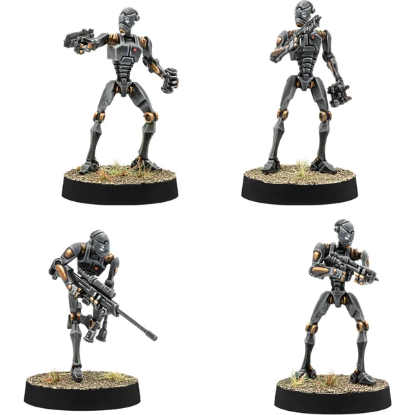 Les droïdes commando excellent dans les attaques de flanc rapides et les attaques éclair et peuvent être personnalisés pour plus de durabilité grâce à leurs boucliers énergétiques ou équipés pour le combat au corps à corps avec des armes de combat rapproché.