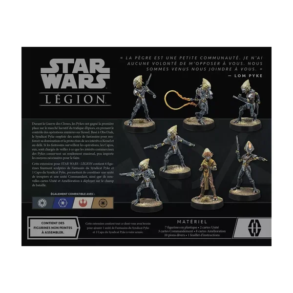 Star Wars : Légion – Fantassins du Syndicat Pyke est une Extension d’Unité pour le jeu de figurines et de combat Star Wars : Légion, pour deux joueurs dès 14 ans, des parties de 120 minutes, et édité par Atomic Mass Games. Référence du produit : FFSWL96