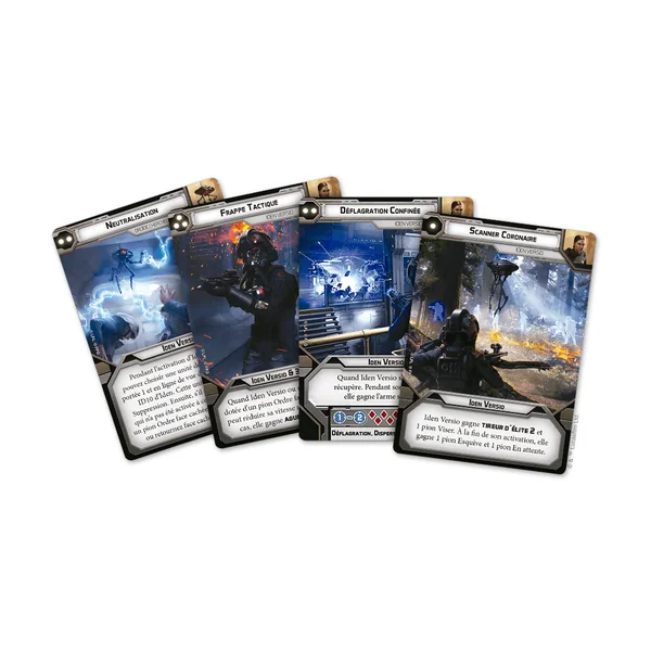En vous permettant d’exploiter les compétences de Versio en tant que chef et soldat, cette extension débloque encore plus de stratégies pour vos armées Impériales. Quatre cartes commandement – trois pour Iden Versio et une pour ID10 – vous donnent la possibilité de modifier vos tactiques à la volée, tandis que neuf cartes amélioration vous invitent à équiper Versio et ID10 d’armes, d’équipements et d’autres éléments supplémentaires.