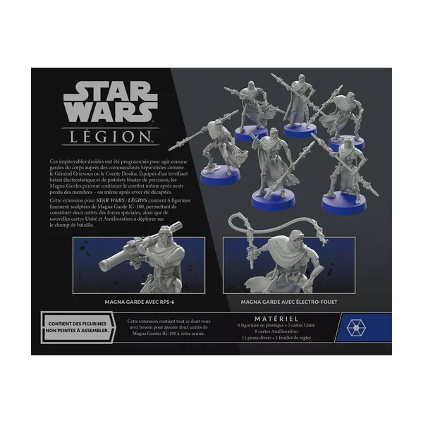 Star Wars : Légion – Magna Gardes IG-100 est une Extension d’Unité pour le jeu de figurines et de combat Star Wars : Légion, pour deux joueurs dès 14 ans, des parties de 120 minutes, et édité par Atomic Mass Games. Référence du produit : FFSWL89