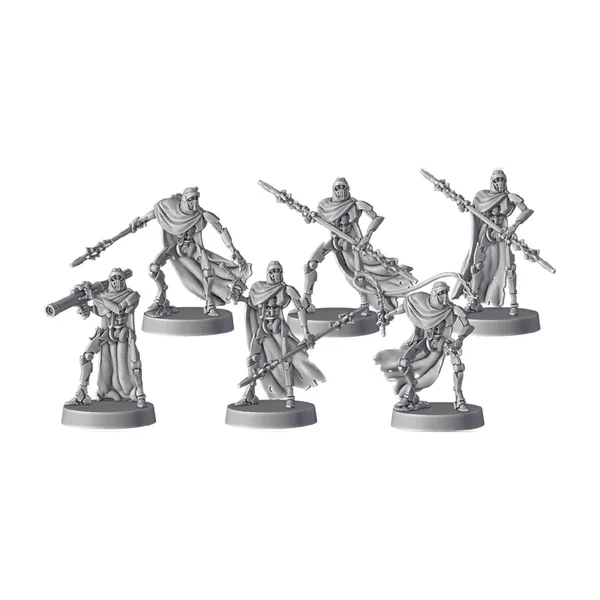 Cette extension met à votre disposition une troupe de six figurines de MagnaGuard IG-100 en plastique dur, non peintes et très détaillées, ce qui est suffisant pour deux unités de forces spéciales. En plus de leur bâton électrique standard, ces figurines peuvent être assemblées avec une variété d’armes alternatives, dont un lance-roquettes RPS-6, un fouet électrique et un chef d’unité qui peut apparaître avec une fléchette laser de précision. De plus, huit cartes d’amélioration vous offrent encore plus d’options pour vos MagnaGuards, dont deux armes lourdes.