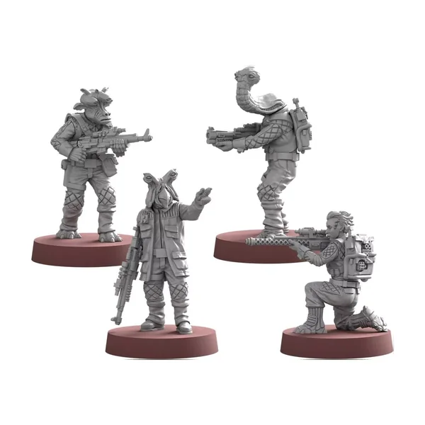 Cette extension vous procure tout ce dont vous avez besoin pour améliorer à la fois l’apparence de vos unités de Soldats Rebelles et la façon dont elles opèrent au combat. Vous trouverez quatre nouvelles figurines en plastique souple non peintes et finement détaillées de Soldats Rebelles dans cette extension, y compris un capitaine Soldat Rebelle Ishi Tib, un spécialiste Soldat Rebelle Gran, un soldat Ithorien avec SX-21 et un soldat Theelin avec DLT-20A. Une carte Unité vous donne la possibilité de composer une nouvelle unité à l’aide de ces figurines, tandis que sept cartes amélioration vous invitent à personnaliser n’importe quelle unité de Soldats Rebelles.