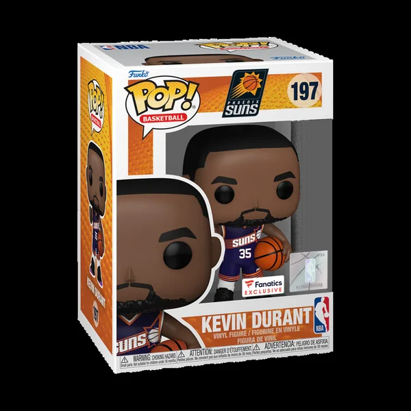 Recrutez Kevin Durant des Phoenix Suns de la NBA pour votre collection de basket-ball ! Dans son uniforme violet et orange Icon Edition, ce POP ! Kevin Durant est sûr d’être un succès dans votre équipe personnelle. La figurine en vinyle mesure environ 9,6 cm.