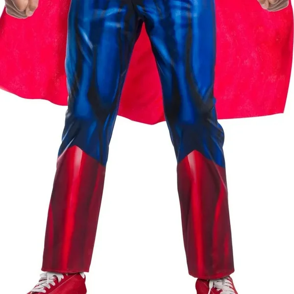 Procurez-vous ce costume qui comprend une combinaison avec une poitrine musclée et une cape pour devenir Superman.
