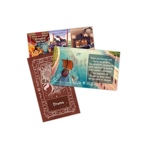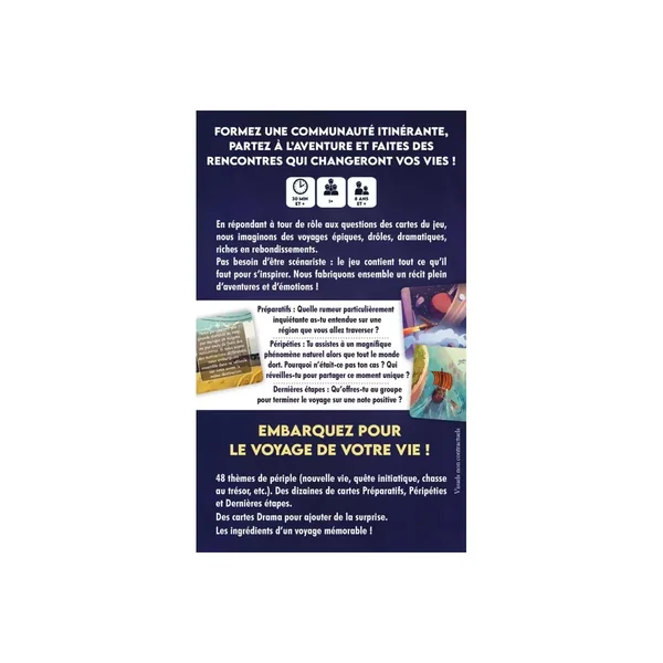 En répondant à tour de rôle aux questions des cartes du jeu, nous imaginons des voyages épiques, drôles, dramatiques, riches en rebondissements.