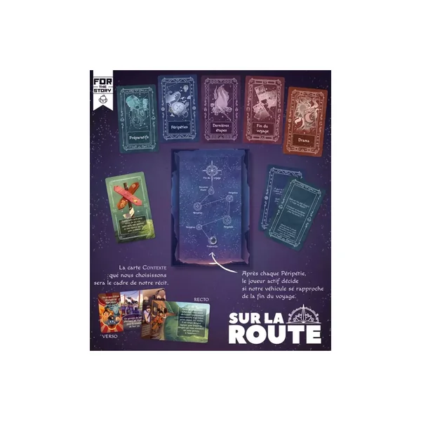 Sur la Route – For the Story est un jeu de société coopératif et narratif jouable de 2 à 42 joueurs, dès 8 ans pour des parties d’environ 30 minutes, édité par Respell.