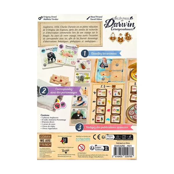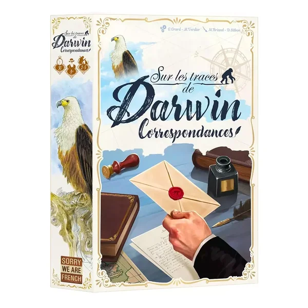 Sur les Traces de Darwin : Correspondance est une extension jouable de 2 à 5 joueurs dès 8 ans pour des parties d’environ 20 minutes, édité par Sorry We Are French.