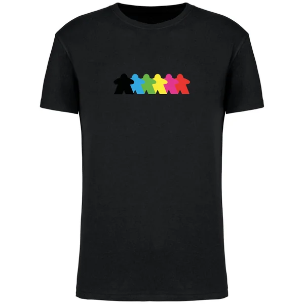Exprimez votre amour des jeux de société avec style grâce à ce t-shirt unique arborant une adorable famille de Meeple ! Symbole des joueurs stratèges et des aventuriers, ces petits personnages colorés représentent l’esprit de partage et de convivialité qui anime chaque partie.