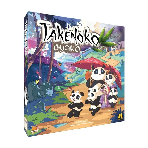 Takenoko Oyako est un jeu de société familial jouable de 2 à 4 joueurs, dès 8 ans pour des parties de 45 minutes, édité par Bombyx et Matagot, conçu par Antoine Bauza (7 Wonders, Hanabi, Tokaido).