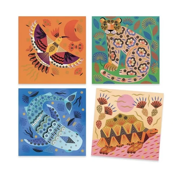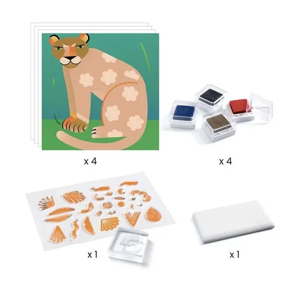 Un coffret de tampons inédit sur le thème des animaux où l’enfant compose des motifs pour agrémenter la robe de ces bêtes sauvages.