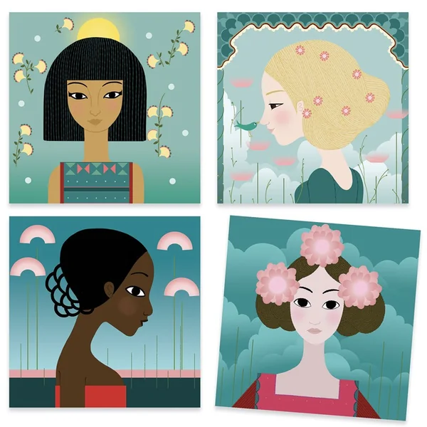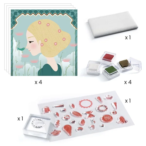 Un coffret de tampons inédit où l’enfant compose des motifs pour décorer tenues et chevelures de ces princesses du monde. Il associe les motifs et les positionne avec précision grâce aux tampons transparents qui permettent de toujours voir sa création. Au fil de la réalisation, les jeunes filles se parent d’ornements subtils et raffinés.