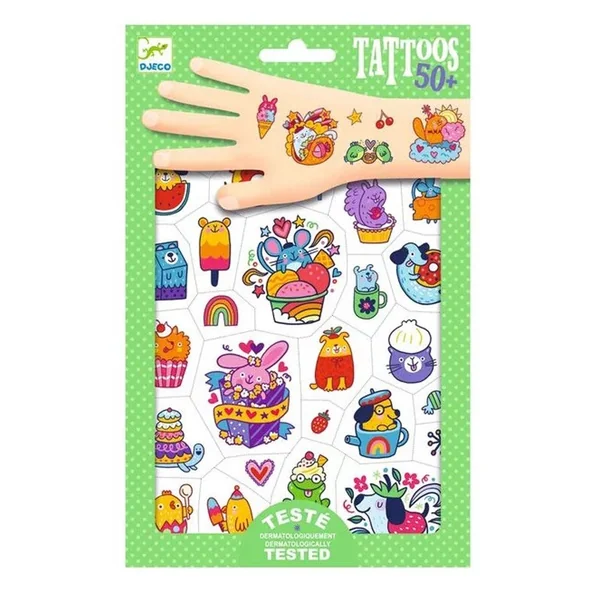 Deux planches de tatouages temporaires aux illustrations Kawai très colorées et gourmandes, pour le plus grand plaisir des enfants ! Faciles à utiliser, ils sont prédécoupés et s’appliquent avec un peu d’eau.
