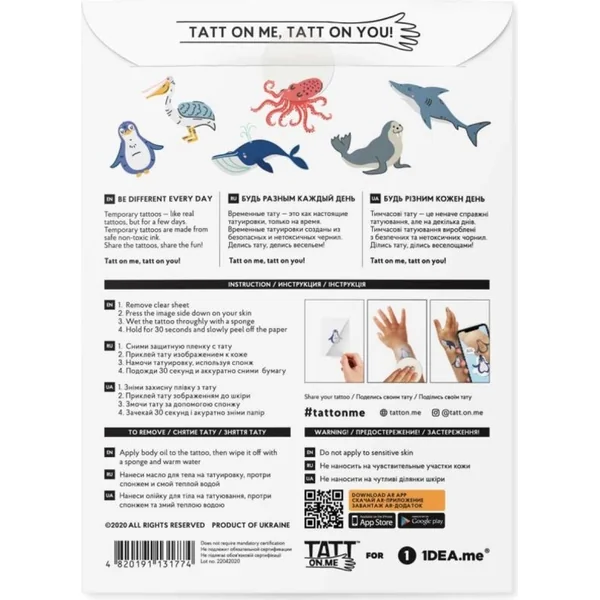 TATTonMe Tatouages vivants pour enfants Animaux marins
