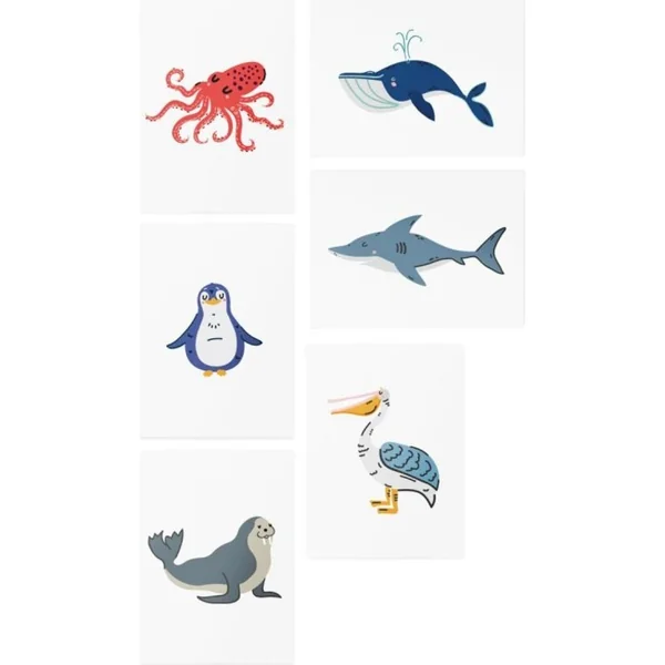 Qui sait plonger le mieux ? Ce sont nos animaux océaniques des tatouages temporaires. Mettez-les sur votre peau et donnez-leur vie ! Les enfants seront certainement émerveillés !