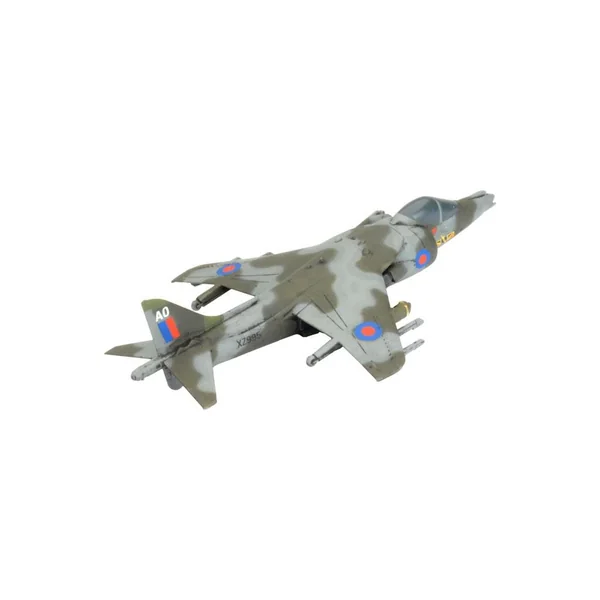 La boîte Harrier Close Support Flight contient 2 avions Harrier en plastique, 2 socles avec support de vol, 1 planche de décalcomanies et une carte d’unité.