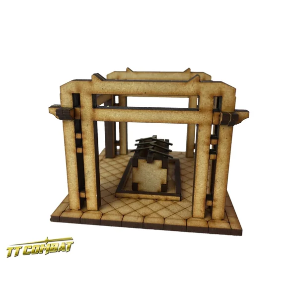 Le bâtiment Temizuya est fabriqué en MDF de 3 mm et en carton gris de 1 mm.Superbe décor à utiliser avec des jeux comme Bushido, Malifaux et Infinity. À monter et à peindre.