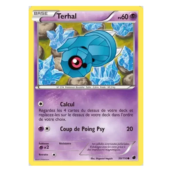 Découvrez Terhal (plf050), une carte Pokémon de l’extension Glaciation Plasma, provenant du bloc Noir & Blanc. Idéale pour compléter votre collection, cette carte Commune plaira autant aux collectionneurs qu’aux joueurs.