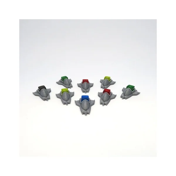 - 5 jetons de joueur astronaute : jaune, bleu, noir, vert et rouge