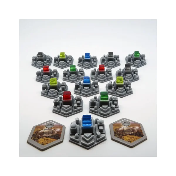 Contient 87 pièces en plastique pour remplacer les pions en carton du jeu.
