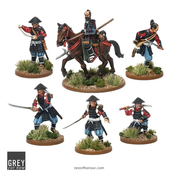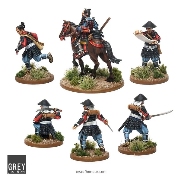 La boîte contient 18 cartes de jeu pour Test of Honour et 6 figurines en métal plus leurs socles.