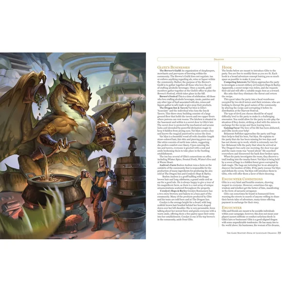 Dans The Game Master’s Book of Legendary Dragons, les lecteurs découvriront plus de deux douzaines de créatures épiques, chacune dotée d’un contexte, d’une histoire, de motivations, d’actions liées à leur repaire, d’actions de combat légendaires et bien plus encore. Ces créatures sont conçues pour être un centre d’attention majeur dans n’importe quelle campagne.
