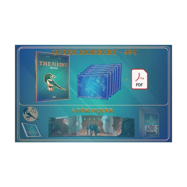 Chaque étape est soumise à une limite de temps suggérée, que l’application à débloquer The Heist – RPG vous permettra de mettre facilement en scène ! L’accent est mis sur la prise d’initiative des joueurs durant le casse, leur capacité à improviser des solutions, trouver des manières d’agir qui leur appartiennent, qu’elles soient prévues par le scénario ou non.