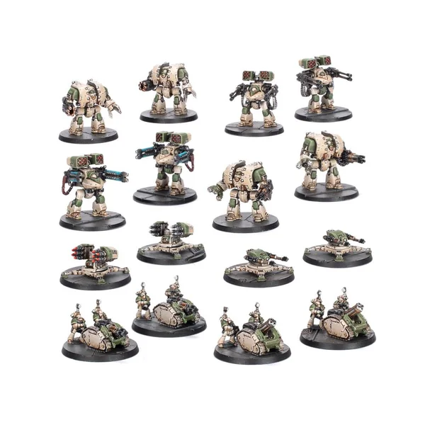 Les Legiones Astartes emploient une variété étourdissante de machines de guerre et de plates-formes d’armes spécialisées, dont des Dreadnoughts lourds conçus pour offrir une puissance de feu à longue portée, et d’autres variantes d’assaut lourdes pour briser les lignes. Ces atouts sont généralement organisés en détachements de soutien, déployés pour renforcer et compléter la terrible infanterie et les redoutables chars de leur Légion.