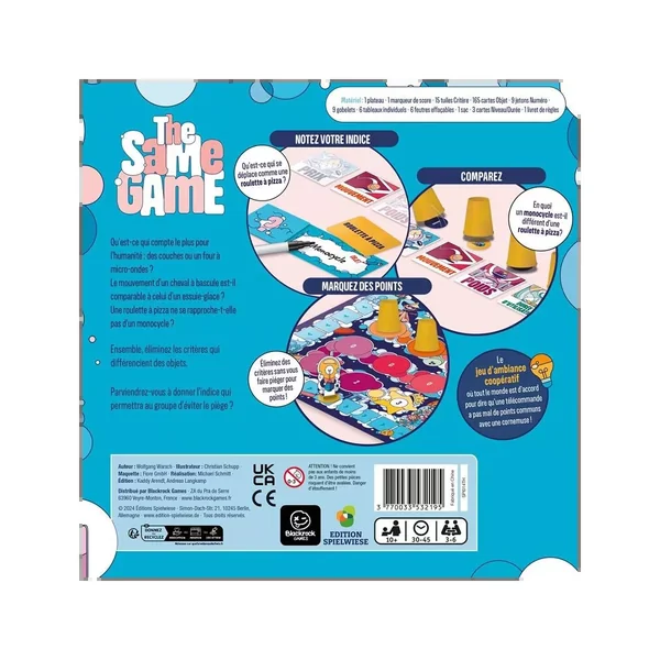 The Same Game est un jeu coopératif et de déduction, de 3 à 6 joueurs, dès 10 ans pour des parties d’environ 30 minutes, édité par Spielwiese.