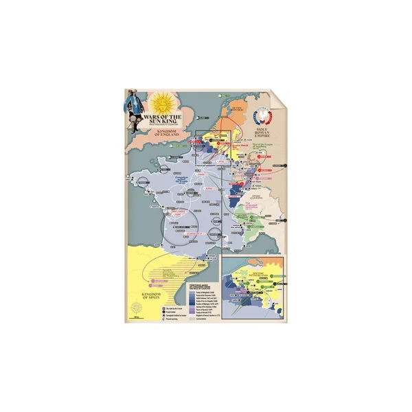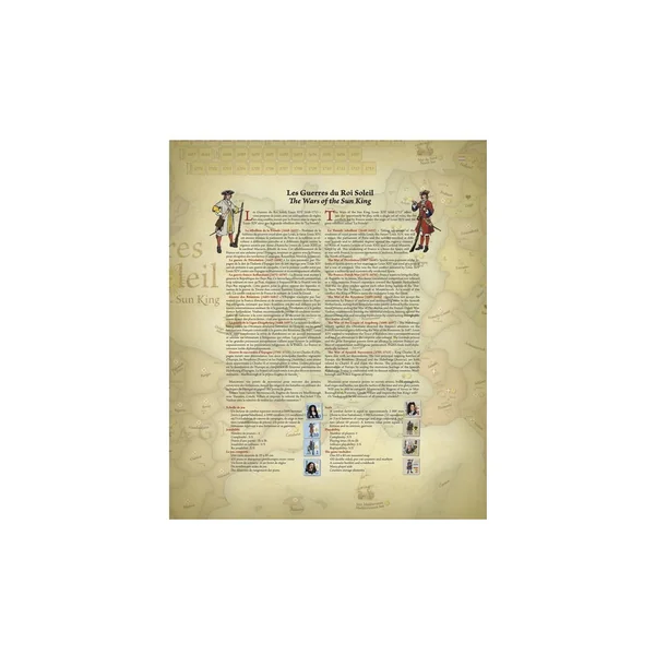 C’est la première occasion de jouer, avec un seul jeu de règles, les cinq conflits menés par la France sous le règne de Louis XIV le Grand et la grande rébellion dite de « La Fronde ». La rébellion de la Fronde (1648-1653) – profitant de la faiblesse du pouvoir royal alors que Louis, le futur Louis XIV, est encore mineur, le parlement de Paris et la noblesse se révoltent à différentes périodes et à différents degrés contre la régence assurée par Anne d’Autriche (veuve de Louis XIII) et le cardinal Mazarin, détesté de tous. Cet affaiblissement de la France est une aubaine pour l’Espagne, toujours en guerre avec la France, pour récupérer des territoires (Catalogne, Roussillon, Nord de la France).
