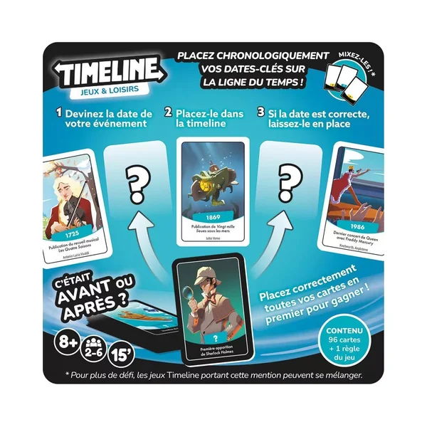 Timeline : Jeux & Loisirs est un jeu de société de culture générale jouable de 2 à 6 joueurs, dès 8 ans pour des parties d’environ 15 minutes, édité par Asmodee.