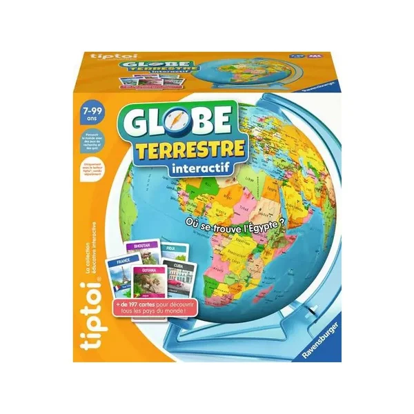 Pars à la découverte du monde ! Où se trouve l’Égypte ? Comment s’appelle la capitale de la Nouvelle-Zélande ? Et dans quel pays se trouve la porte de Brandebourg ? Pointe sur les différents pays du globe pour avoir accès à une foule d’informations les concernant. Retrouve un globe tournant et des dizaines d’informations passionnantes. ‘Globe terrestre interactif’ est un globe interactif accessible dès 7 ans. Fonctionne uniquement avec le lecteur tiptoi®, vendu séparément.tiptoi® est un lecteur éducatif interactif qui permet aux enfants de découvrir le monde de façon ludique et autonome. Lorsque l’enfant pointe le lecteur sur une image ou un texte, il entend des sons, des informations, des personnages ou de la musique. Apprendre n’a jamais été aussi vivant et ludique ! tiptoi® apporte une dimension nouvelle au contenu pédagogique des supports : que ce soit dans les livres, les jeux ou le globe, l’enfant n’a qu’à pointer le lecteur dessus et tout s’anime comme par magie !