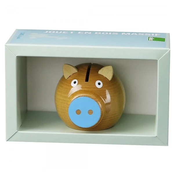 Tirelire cochon bois naturel-bleu – 100% Made In France.