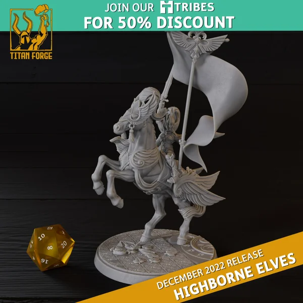 Titan Forge – Highbornes Elves – Standard Bearer On Horse